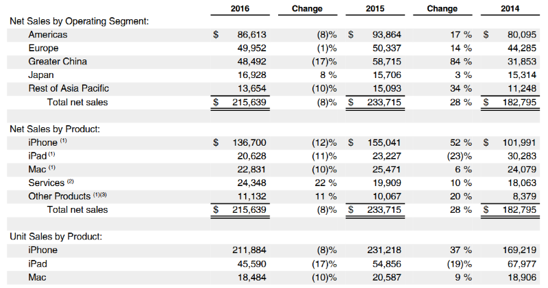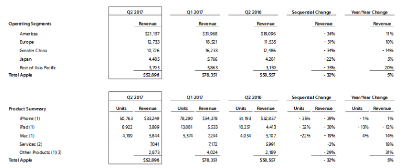 Apple grew revenues five percent despite a 14% slide in China Click to enlarge. (Images: Apple)